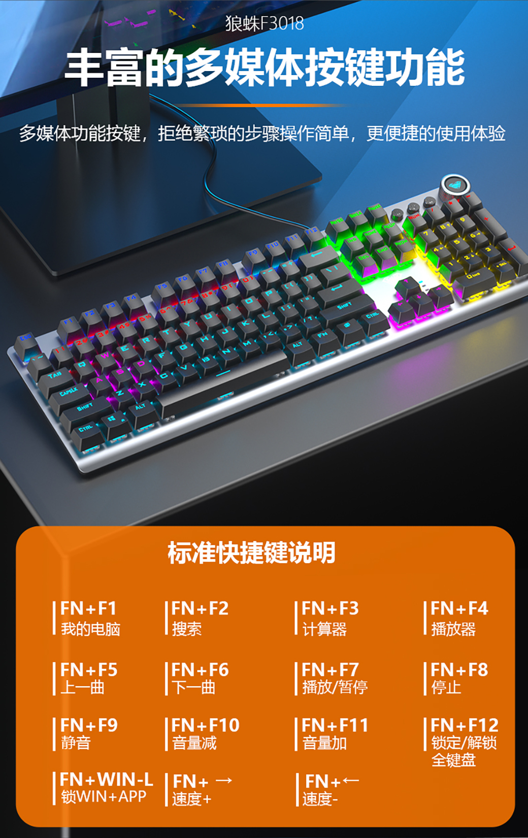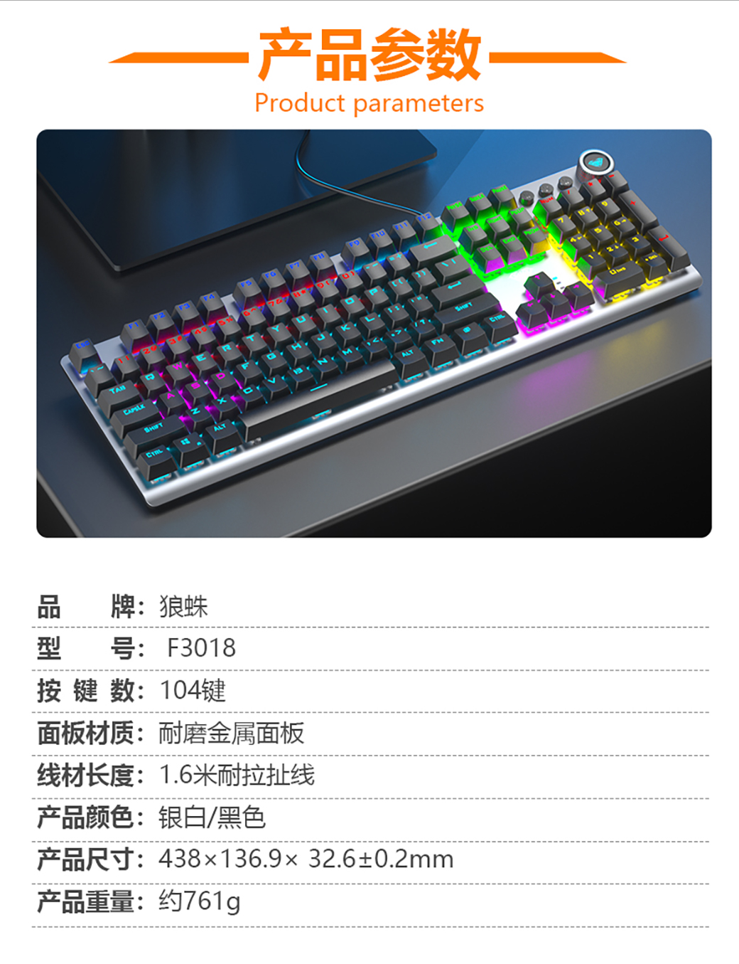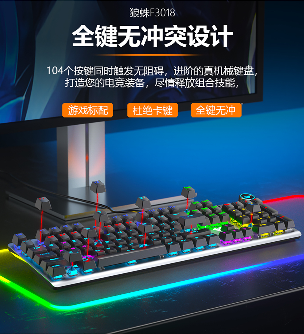 狼蛛F3018 电竞游戏机械键盘