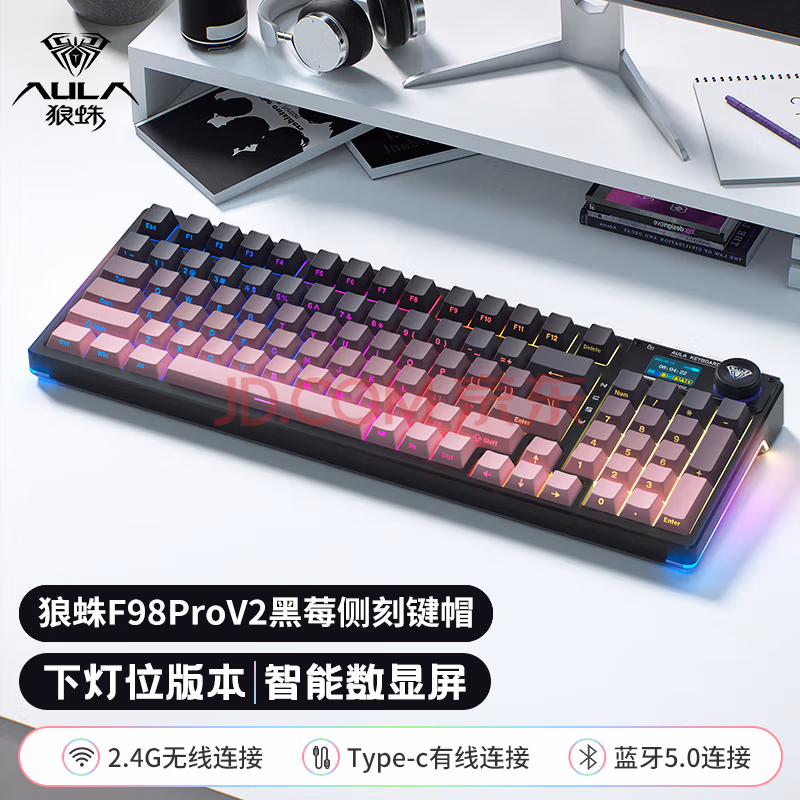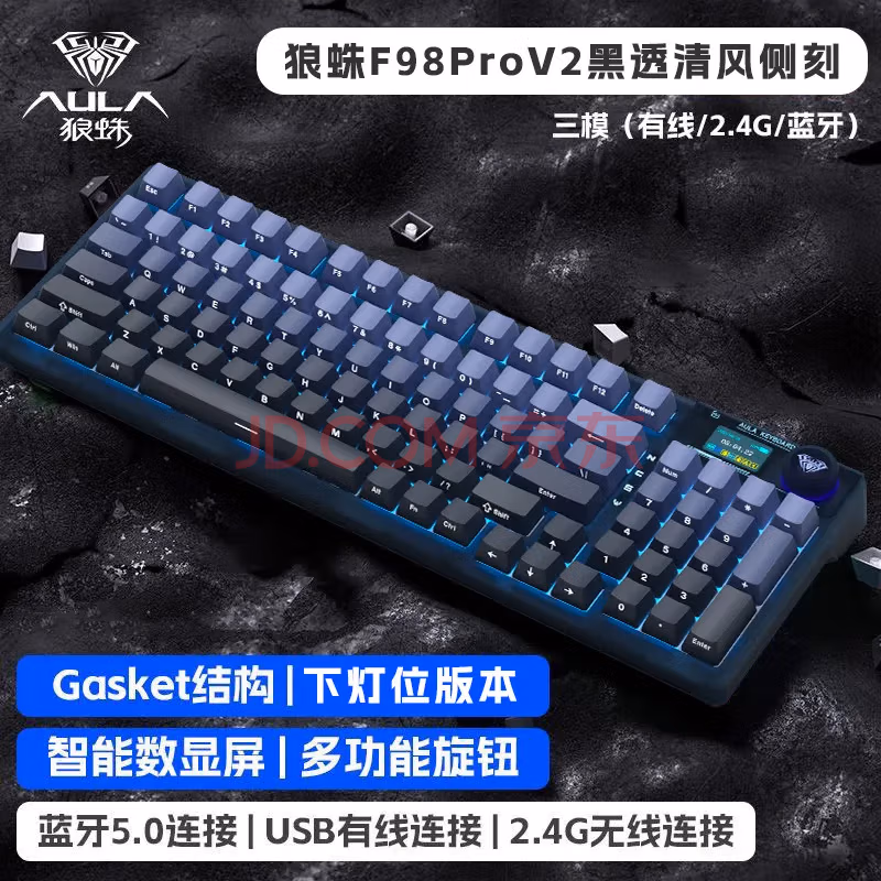狼蛛旗舰新品F98pro V2 下灯位 智能屏电竞游戏机械键盘
